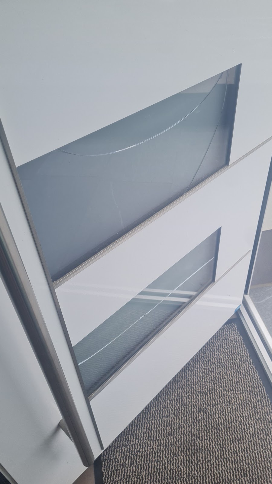 In 2015 beim Neubau eine Panz Alutür einbauen lassen. So sieht das Glas der Tür nach 10 Jahren aus. Innen und aussen ist das Glas gebrochen.