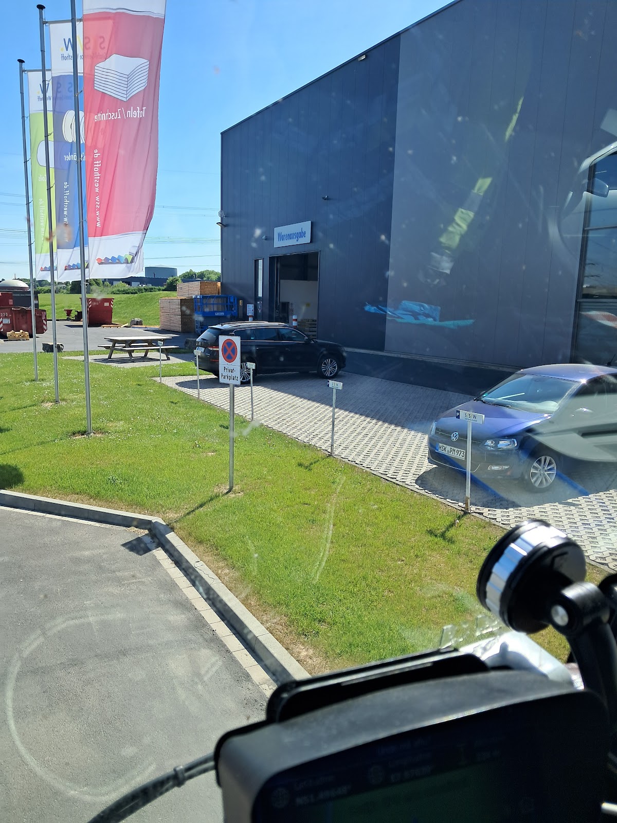 51.4958, 7.9708. Zum Herunterladen gehen wir hierher, Sie müssen nicht nach einem Büro suchen, alles erfolgt nach dem Prinzip „Wer zuerst kommt, mahlt zuerst“, wie bereits erwähnt. Wenn Sie vor dem Tor stehen, werden Sie um eine Referenznummer gebeten. Bereiten Sie diese Informationen daher im Voraus vor. Von der linken Seite beladen, sofort befestigen, fotografieren. Schöner Ort, nette Leute, sie haben mir geholfen, die Ladung zu sichern, um den Prozess zu beschleunigen. Es gibt genügend Platz in der Nähe des Unternehmens und Sie können problemlos übernachten. Wenn Sie Zeit haben, sind die Geschäfte etwa einen Kilometer entfernt.