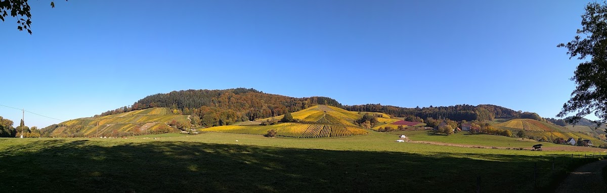 Weg an der Glotter entlang in den Ort, Blick auf die Weinberge