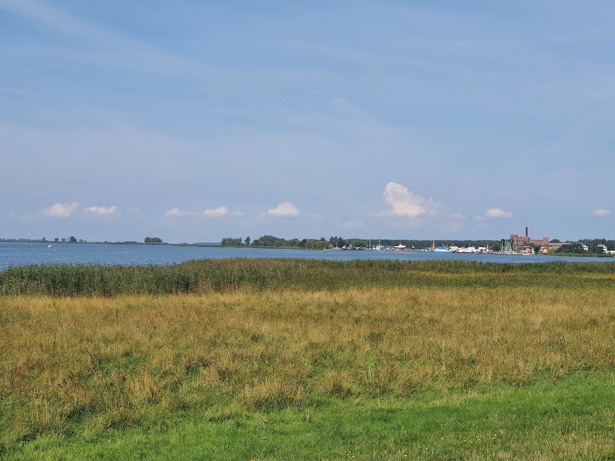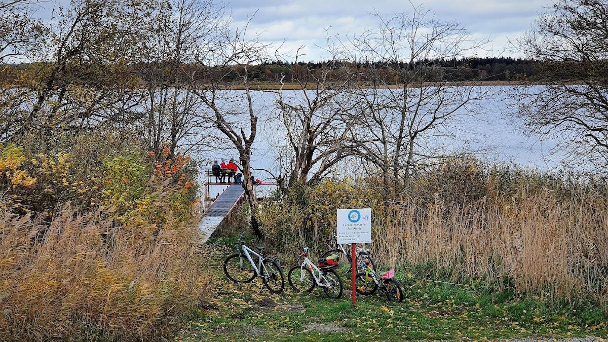 Ist einfach ein Steg mit einer Bank darauf. Sehr gut geeignet, um Wasservögel zu beobachten.