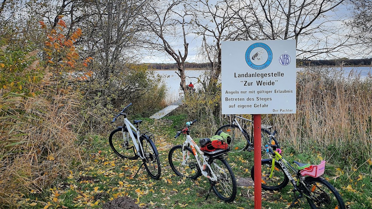 Kleiner privater Steg des Angelvereins "Am Cämmerer See e.V.". Betreten erlaubt auf eigene Gefahr. Ein schöner Platz auf der Sitzbank für eine Rast und entspannenden Blick über den See.