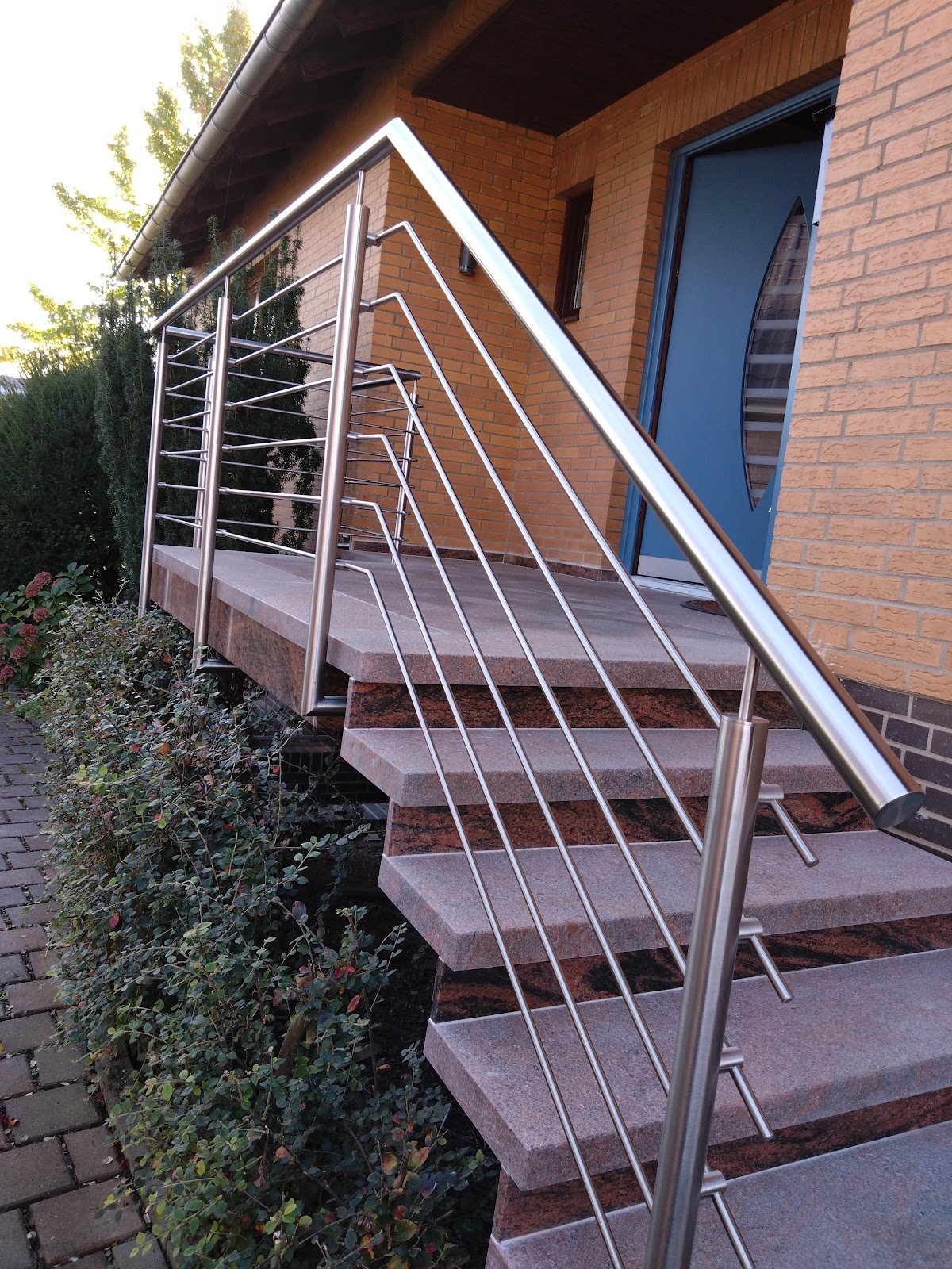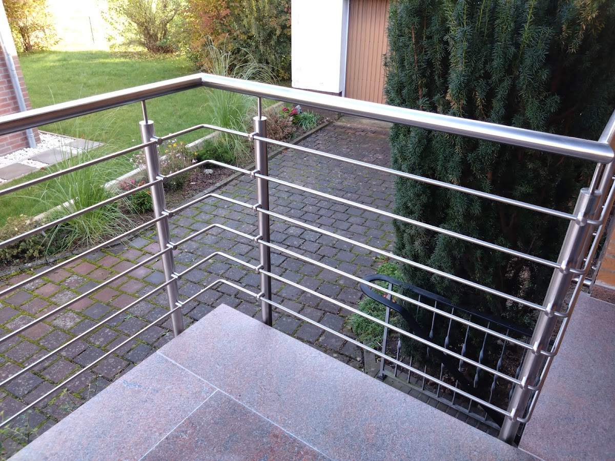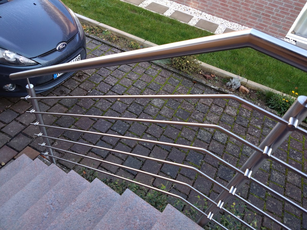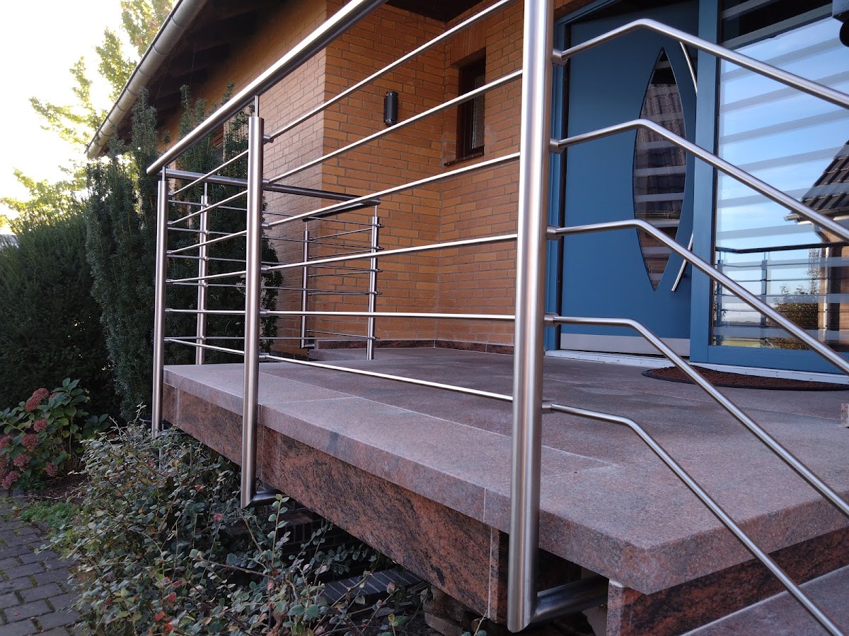Sehr gute Beratung. Die Ausführung war schnell und unkompliziert und genauso wie wir es uns vorgestellt haben. Unser neues Geländer wirkt filigran und nicht zu klobig. Es wurde von unten befestigt, damit im Podest keine Wasserschäden entstehen können. Darauf wurden wir ausdrücklich hingewiesen, weil ja viele ihre Geländer vorne einfach nur dran schrauben oder sogar oben aufsetzen. Wir sind wirklich vollstens zufrieden und können die Firma nur weiterempfehlen.