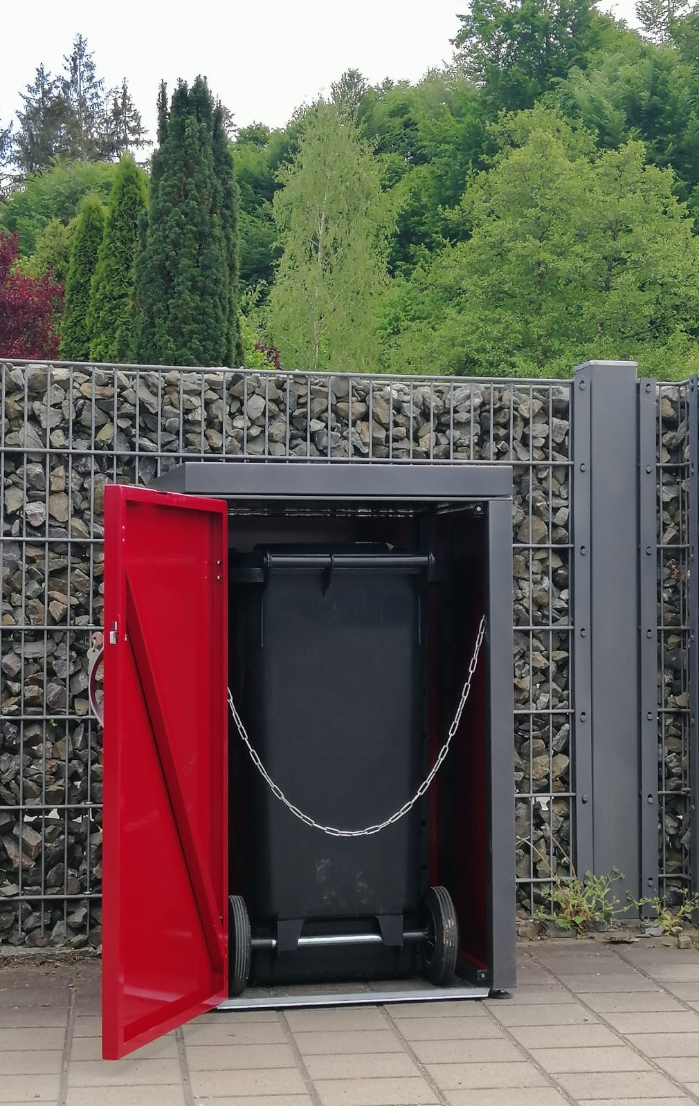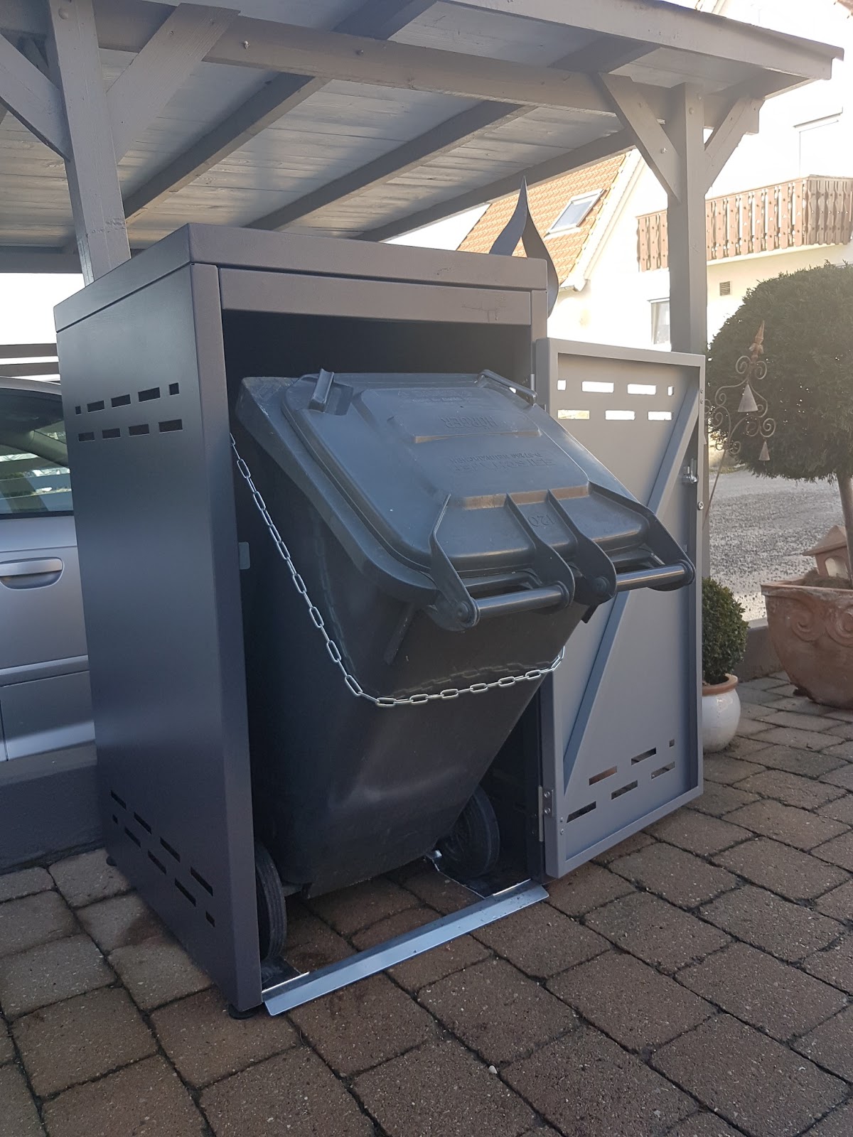 Meine neue Mülltonnenbox Ecoprice von AlpenMetall. Die Stabilität hat mich sehr überzeugt. Design und Farbe - passend zu unserem Carport. Endlich ist die hässliche Tonne in der Einfahrt verkleidet.