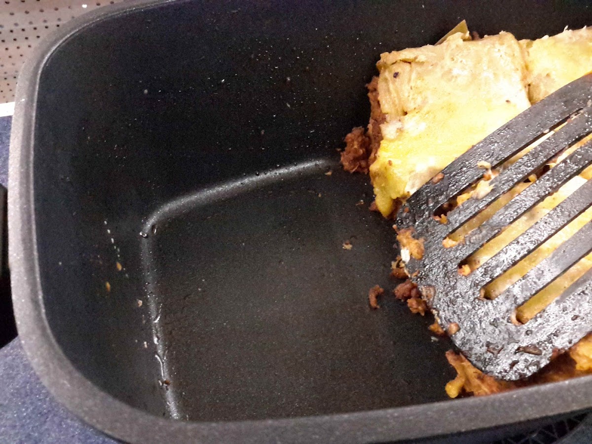 Die Pfanne wurde nur wenige Male benutzt, und ich habe darauf geachtet, ausschließlich Plastik-Kochgeschirr zu verwenden und sie nicht in der Spülmaschine zu reinigen.