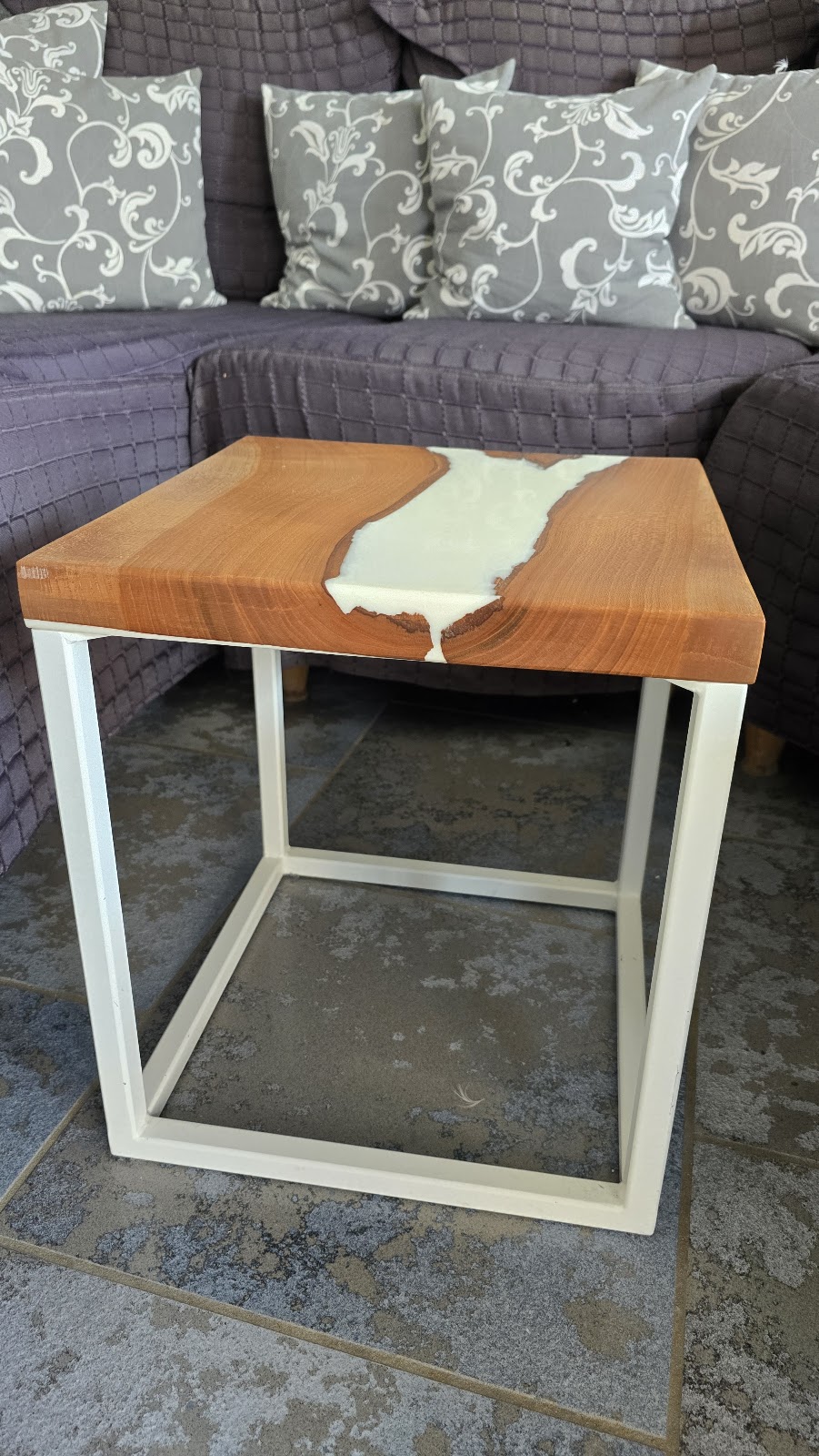Bei RP Metall habe ich einen Beistelltisch in Auftrag gegeben. Oberfläche: Nussbaumholz mit Epoxidharz weiss Gestell: Stahl, weiss lackiert Die Holzplatte wurde optisch mit Epoxidharz aufgewertet, was sehr gut umgesetzt wurde. Das Stahlgestell wurde perfekt geschweisst und lackiert. Mir war ein diskretes Gestell wichtig, da der Tisch mit 40x40x40 cm recht klein ist. Das Endergebnis entspricht exakt meinen Erwartungen. Ich freue mich auf das nächste gemeinsame Projekt. Vielen Dank für die tolle Arbeit