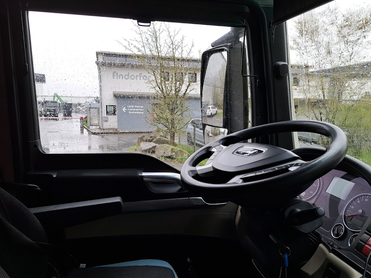 Eine Bucht vor der Firma, man kann pausieren, das Entladen beginnt um 8, nicht um 7. Nettes Personal in der Firma, Toilette und Dusche vorhanden 💪