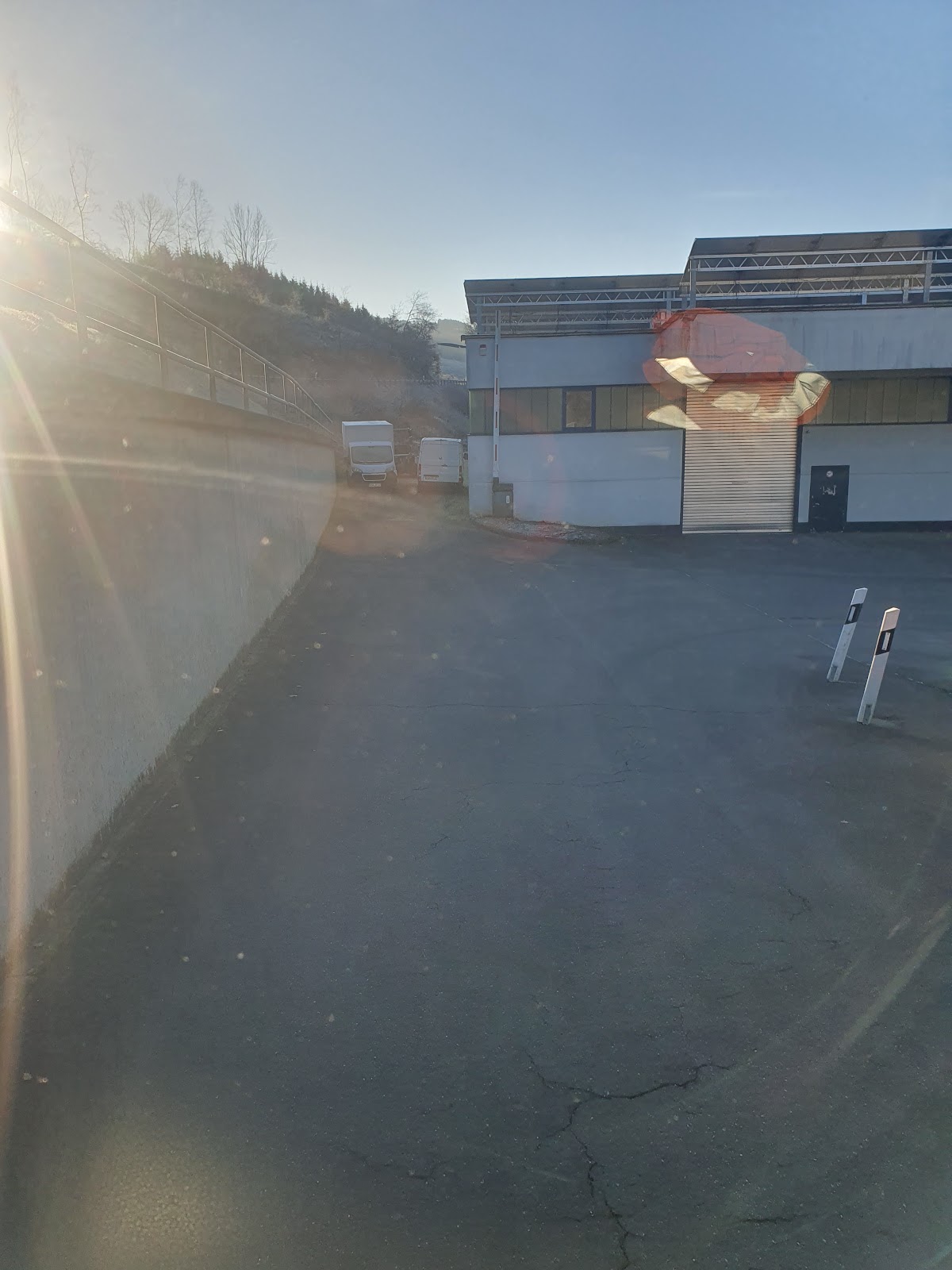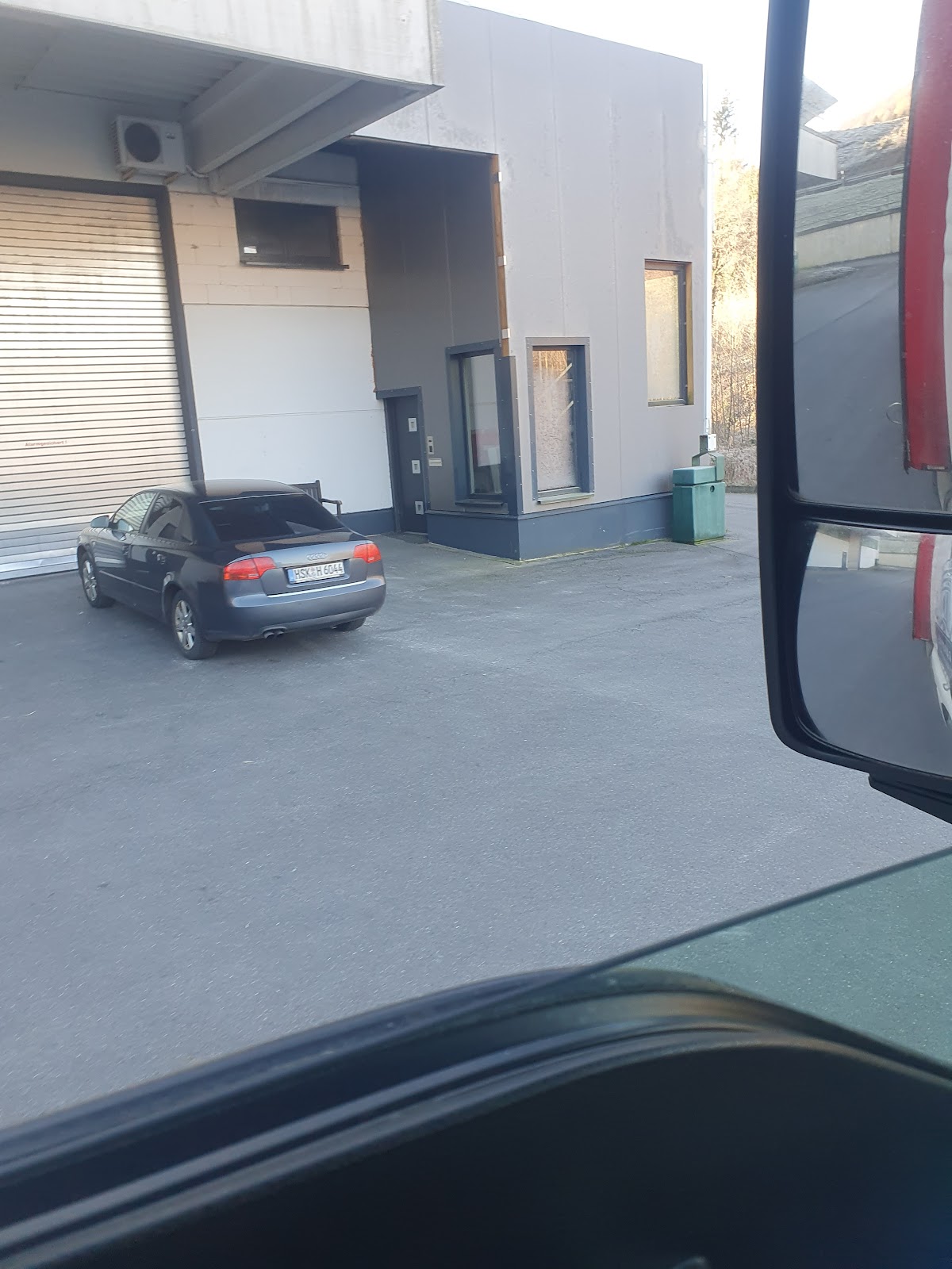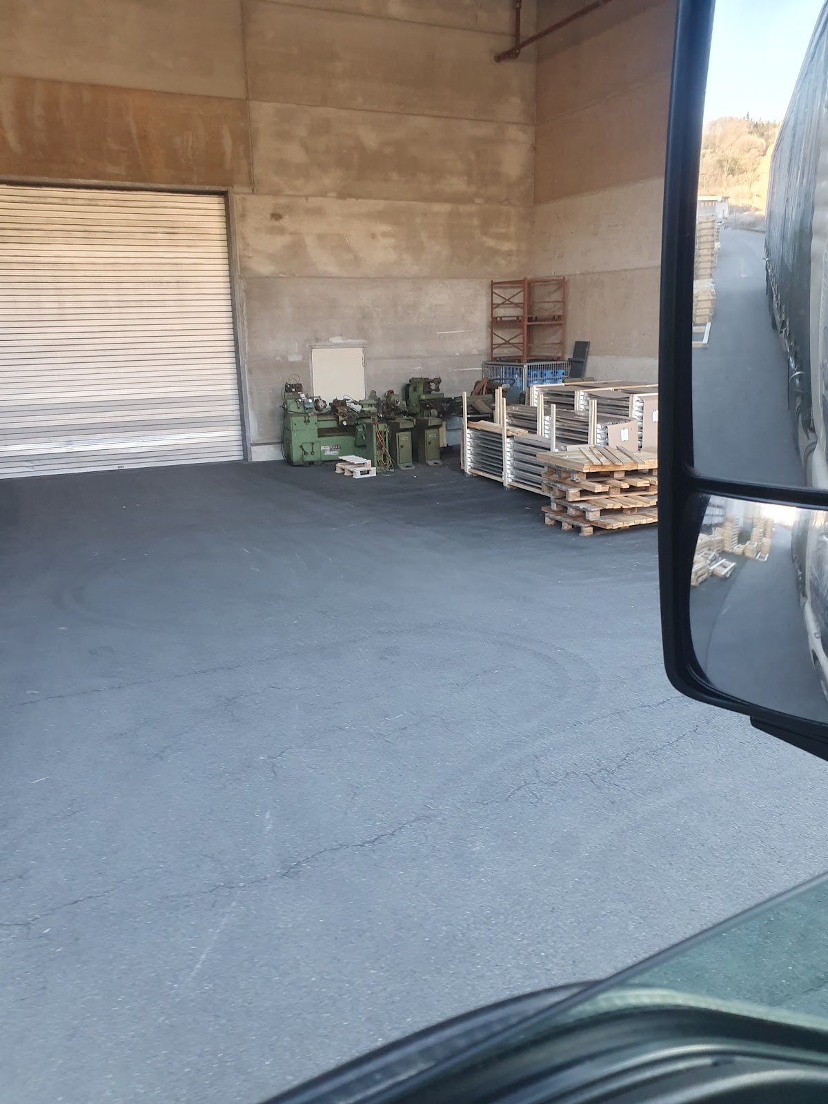 Sie haben schnell abgeladen, sie haben eine Pause auf dem Gelände eingelegt. Es gibt eine Toilette, aber keine Dusche. Deshalb gibt es laut Navigator keine Erlaubnis, auf der Straße zu fahren.