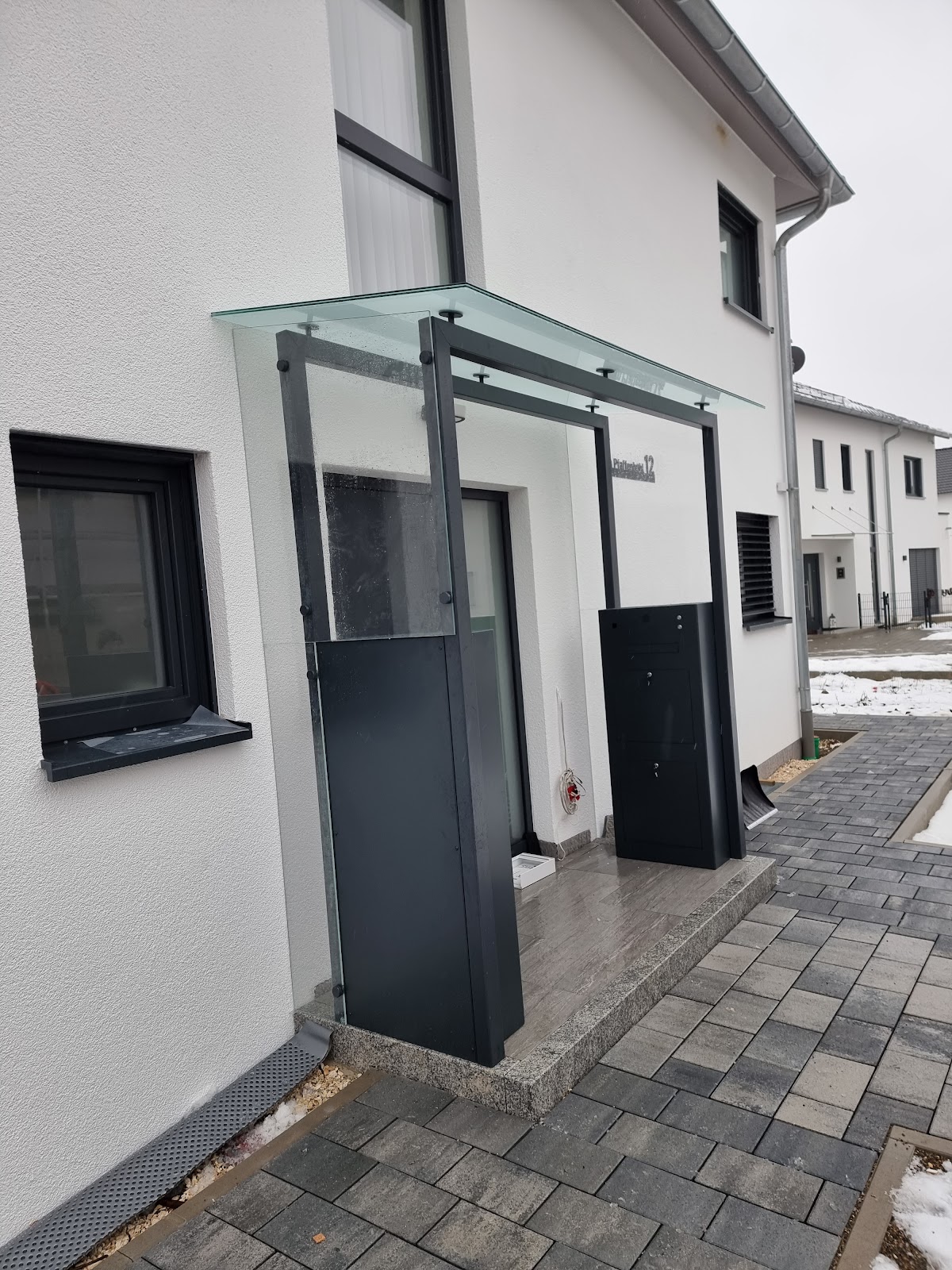 Zunächst war diese (nur) zweigeteilt geplant um die Glasscheiben einfacher ins Haus zu bekommen.