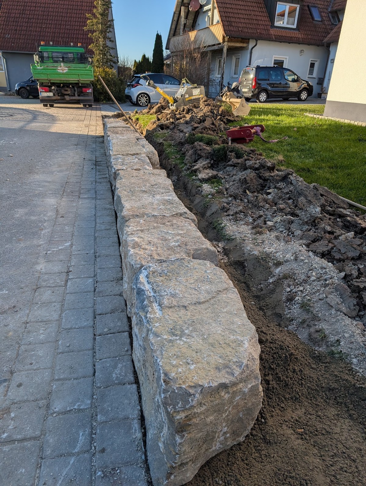 Ich bin sehr zufrieden. Die Firma hat letztes Jahr bei uns den Garten gemacht. Dabei wurde eine Stützmauer mit Granitblöcken errichtet um das Grundstück in 2 Ebenen zu teilen. Jetzt ist es optimal nutzbar.